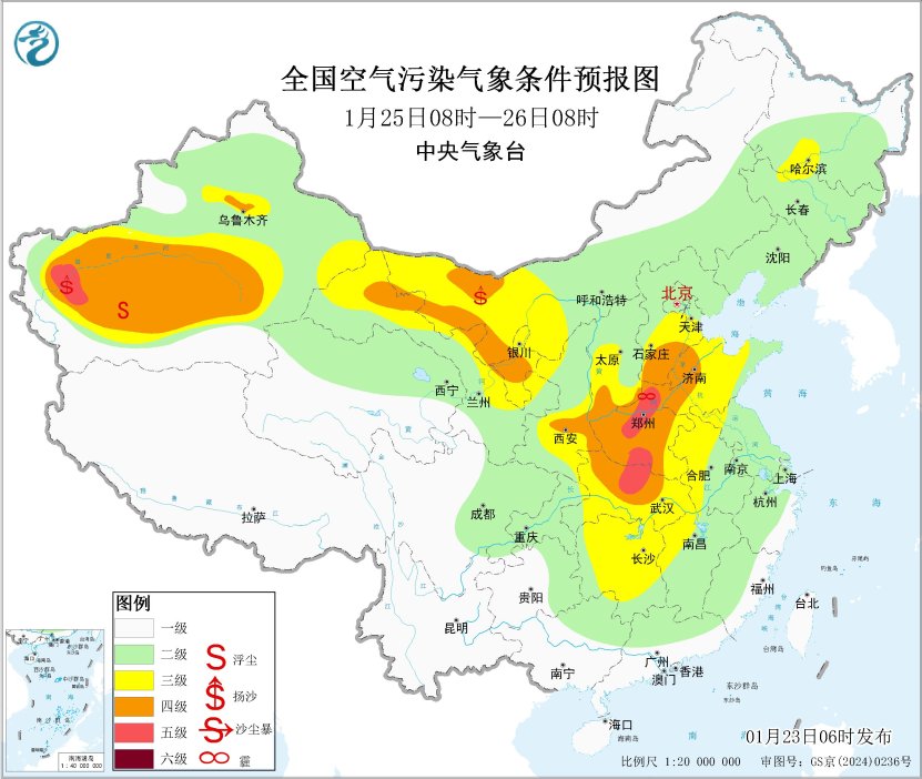 中國網(wǎng)1月23日訊 據(jù)中央氣象臺(tái)消息,23日至25日,華北中南部、黃淮中西部、汾渭平原、四川盆地等地大氣擴(kuò)散條件較差,有輕至中度霾天氣。25日,受冷空氣影響,華北中南部霾天氣減弱或消散。此外,24日至25日,受冷空氣大風(fēng)影響,西北部分地區(qū)有沙塵天氣。