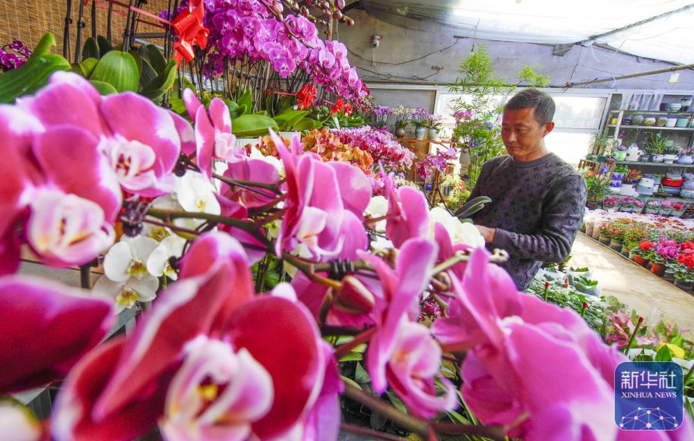 ↑1月22日,河北省遵化市遵化鎮(zhèn)張家坎村農(nóng)民在暖棚管護(hù)花卉,準(zhǔn)備供應(yīng)節(jié)日市場。新華社發(fā)(劉滿倉攝)