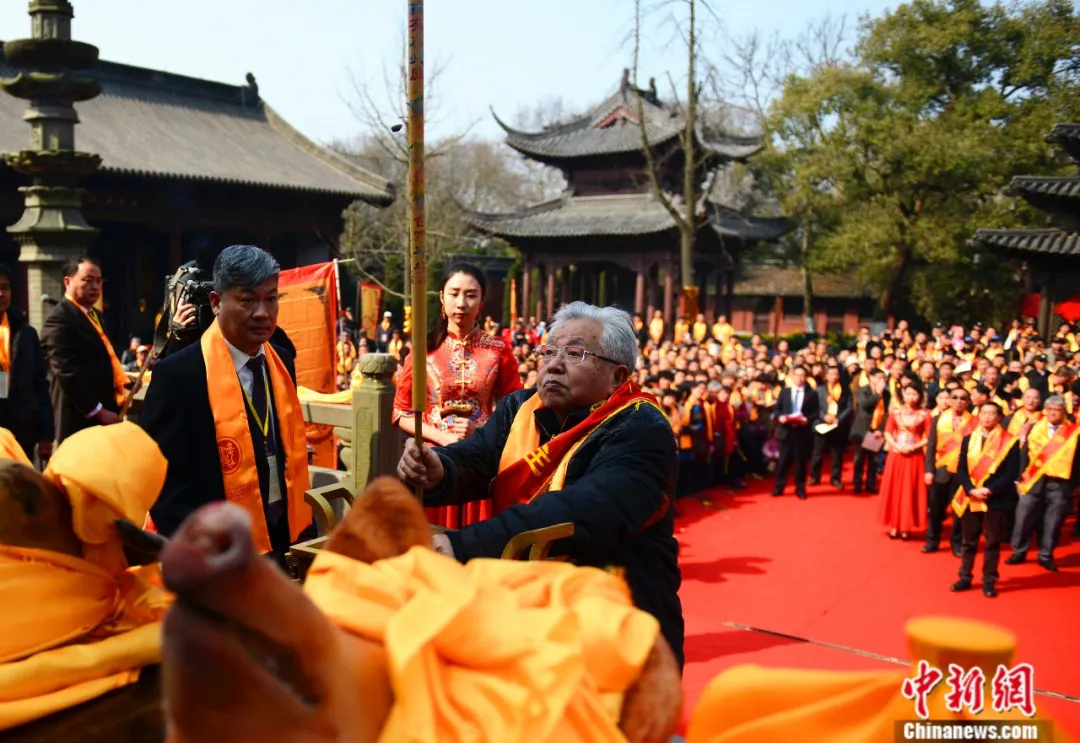 2016年2月25日,農(nóng)歷正月十八,“丙申元宵錢王祭”在浙江省杭州市錢王祠舉行。錢氏后裔按中國傳統(tǒng)禮制,祭拜錢氏先賢,祈福國運昌盛。中新社記者 李晨韻 攝