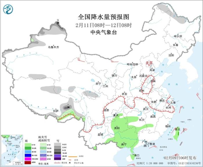 圖4 全國降水量預(yù)報圖(2月11日08時-12日08時)圖片來源:中央氣象臺網(wǎng)站
