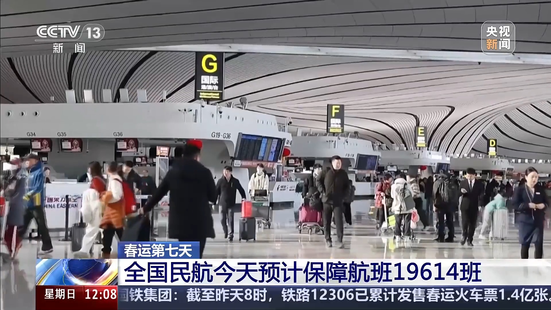 全國民航今天預計保障航班19614班,可提供座位數(shù)297萬個,預計運輸旅客239萬人次。