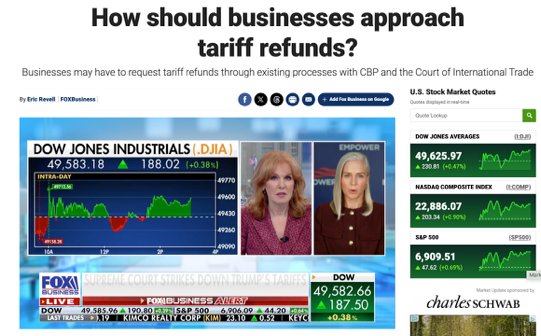 △福克斯商業(yè)臺等媒體已經(jīng)在普遍報道,企業(yè)應(yīng)該如何追索退稅