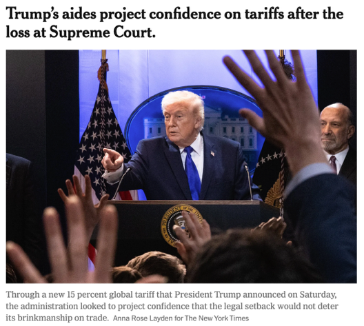 △《紐約時報》報道,特朗普政府當(dāng)?shù)貢r間22日表示,新的征稅方法將以更合法、更持久的方式實現(xiàn)美國的貿(mào)易目標(biāo)