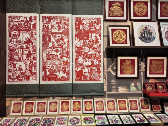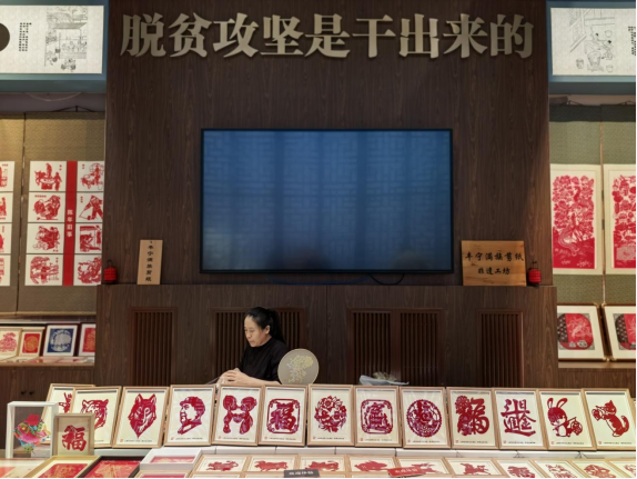 這是中國(guó)工藝美術(shù)館里的豐寧滿(mǎn)族剪紙非遺工坊。新華網(wǎng)記者 唐斕 攝