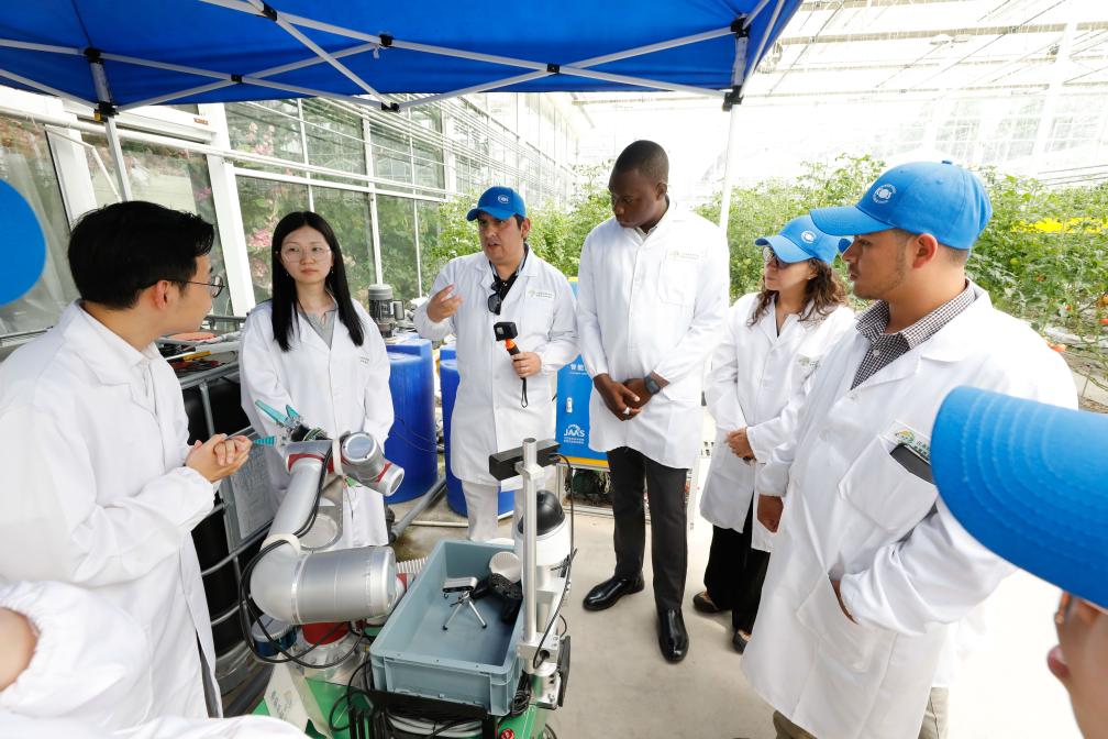 2024年5月22日,“中國—FAO(聯(lián)合國糧農(nóng)組織)南南合作拉丁美洲和加勒比地區(qū)農(nóng)村生計改善和糧食體系轉(zhuǎn)型能力建設(shè)活動”學(xué)員赴江蘇省農(nóng)業(yè)科學(xué)院開展交流。新華社發(fā)(江蘇省農(nóng)業(yè)科學(xué)院供圖)