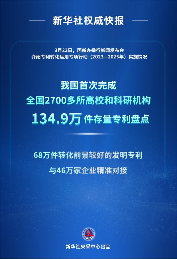 3月23日,國(guó)新辦舉行新聞發(fā)布會(huì)介紹專利轉(zhuǎn)化運(yùn)用專項(xiàng)行動(dòng)(2023—2025年)實(shí)施情況。