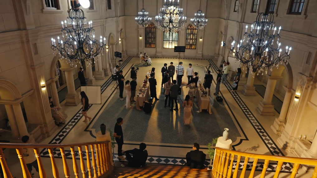 2025年7月,河南省鄭州市金水區(qū)一微短劇拍攝基地,某微短劇正在搭建的“宴會廳”場景中拍攝。新華社記者楊金鑫 攝