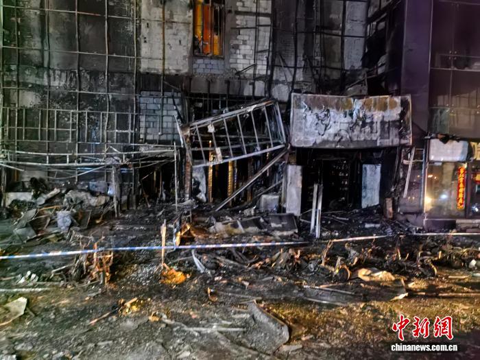 29日1時(shí)許,起火建筑物東側(cè)樓體外墻可見大面積燃燒痕跡,緊鄰?fù)ǖ赖膸组g門面房過(guò)火,受損嚴(yán)重。門面房前邊有多輛電動(dòng)自行車被燒成鐵架子。
