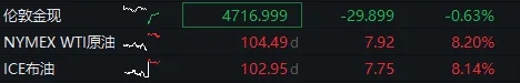 受此影響,國際油價13日開盤后顯著走高,漲幅超過8%。截至北京時間17時30分,WTI原油價格大漲8.20%至104.49美元/桶;布倫特原油大漲8.14%至102.95美元/桶。