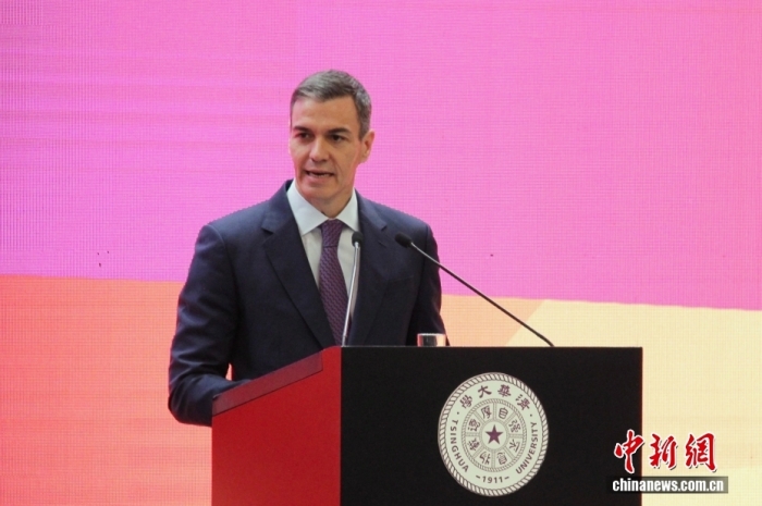 4月13日,北京,西班牙首相桑切斯在清華大學演講。中新社記者 曾玥 攝