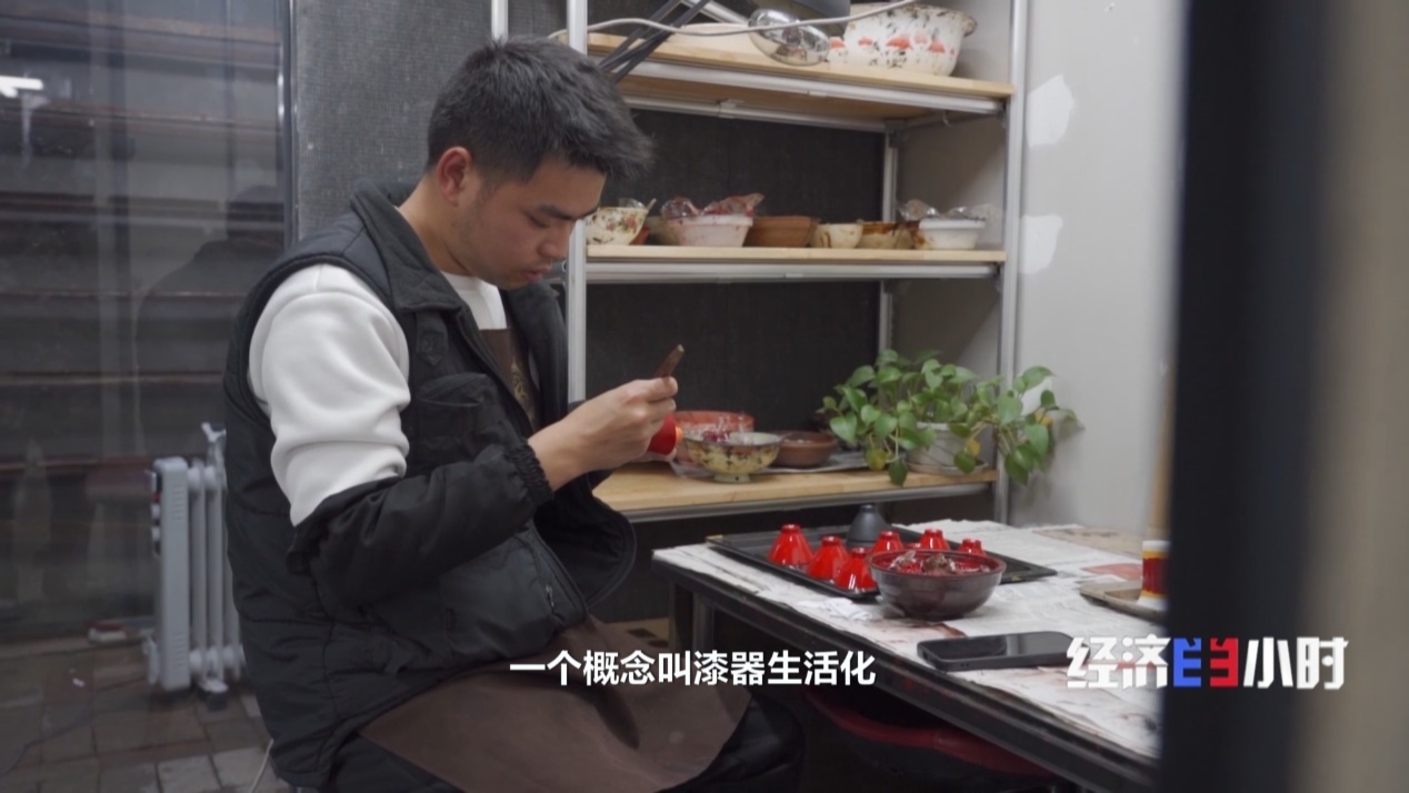 這個開設在茶館里的漆器文創(chuàng)店,獨特之處在于采購體驗于一體。漆器不再被鎖進玻璃柜,而是被放置在茶桌旁、展示架上。消費者可以上手體驗簡單的打磨工序。