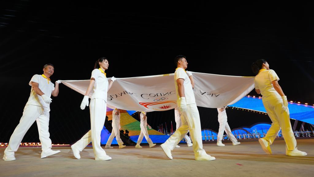 4月22日,亞奧理事會(huì)會(huì)旗在開幕式上入場(chǎng)。新華社記者 陳思汗 攝
