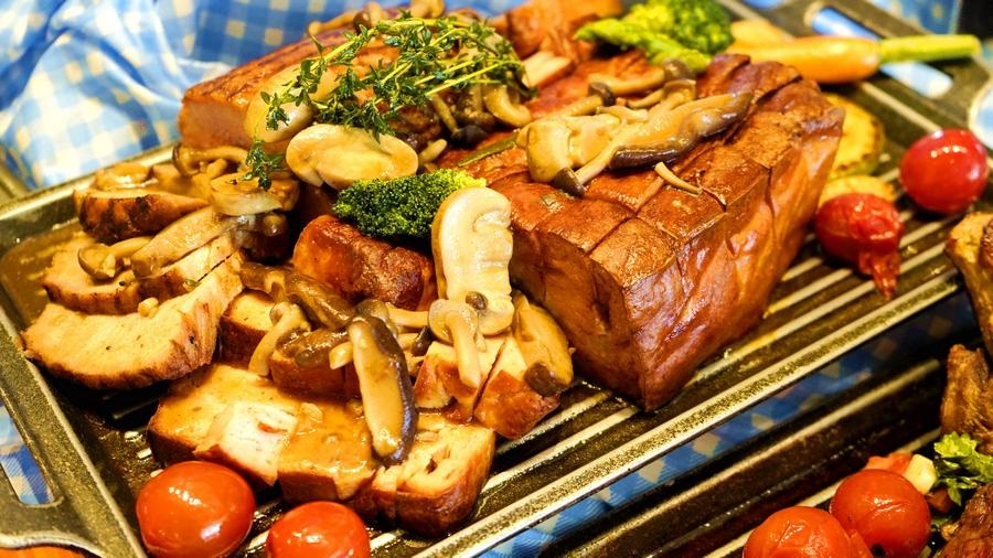 各類香腸瞬間把食客帶入德國的美食世界,德國盛產(chǎn)香腸,其肉質(zhì)緊實(shí),肉汁豐盈。獨(dú)特的風(fēng)味讓食客流連忘返?,F(xiàn)場歡快的音樂烘托著氣氛,法蘭克福香腸、蝸牛豬肉腸、圖林根香腸、慕尼黑白腸、小牛肉腸,各式香腸在食臺上翻滾。清爽的沙拉與制作工藝復(fù)雜的冷切肉,搭配各種小料一起食用,滿滿德國風(fēng)味。