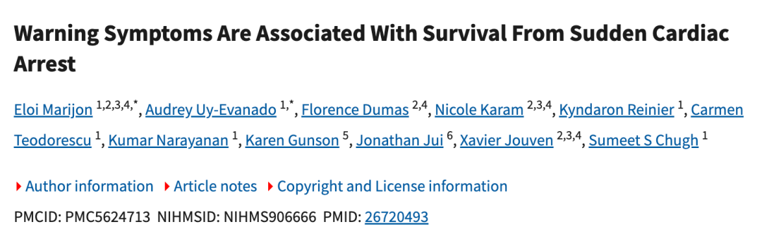 2016《內(nèi)科學(xué)年鑒》刊發(fā)的一篇文章,首次大規(guī)模證實(shí)心臟驟停前存在可識別的預(yù)警癥狀,打破了“猝死毫無征兆”的傳統(tǒng)認(rèn)知。研究納入的839名心臟驟?;颊咧校?30名有先兆癥狀,占51%,主要為:胸痛、呼吸困難、頭暈。①