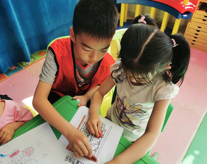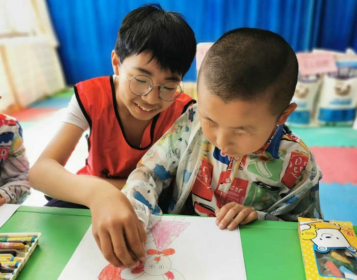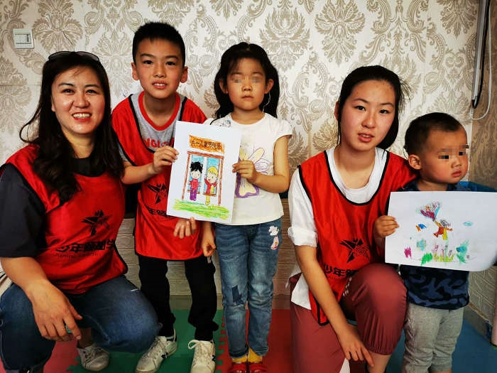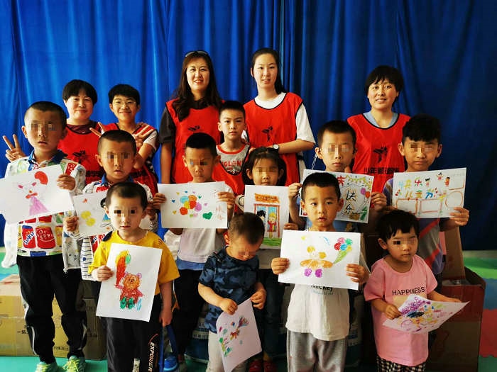 學(xué)員和家長(zhǎng)與康復(fù)中心的孩子們一起描繪“兒童節(jié)”