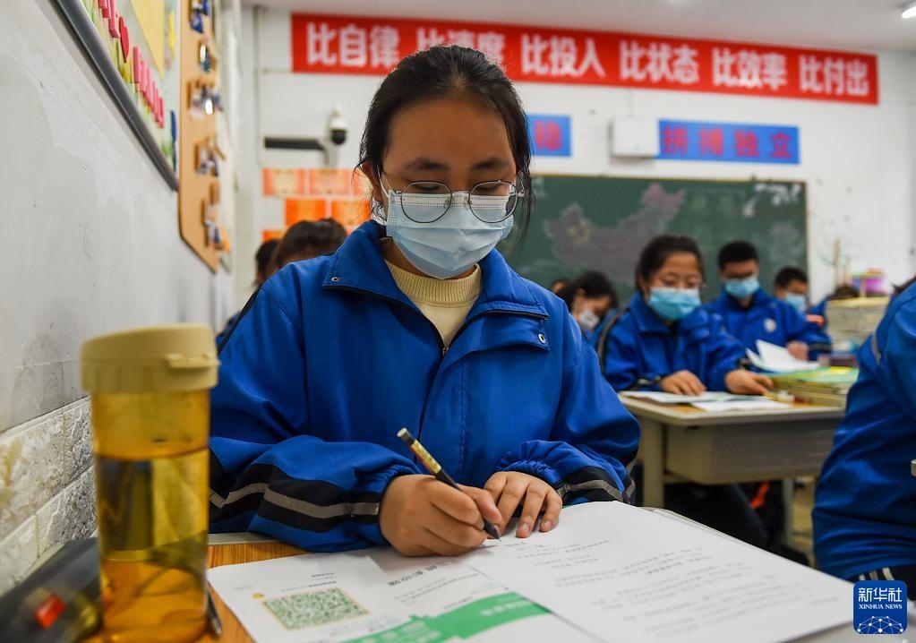 4月1日,呼和浩特市鐵路第二中學(xué)高三年級(jí)學(xué)生填寫健康登記表。