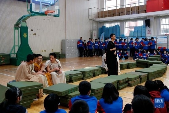 3月29日,中學(xué)生在展示根據(jù)數(shù)學(xué)歷史故事創(chuàng)編的話(huà)劇。