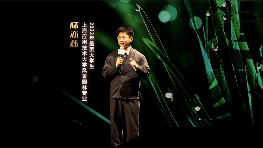 2022年最美大學(xué)生、上海應(yīng)用技術(shù)大學(xué)風(fēng)景園林專業(yè)學(xué)生陸亦煒分享自己的故事。實(shí)習(xí)生韓華良 攝