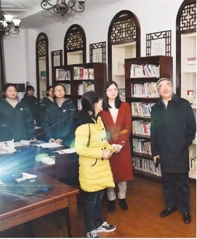朱永新(右一)在基層開展教育調(diào)研。資料圖片