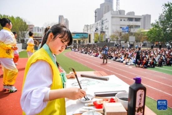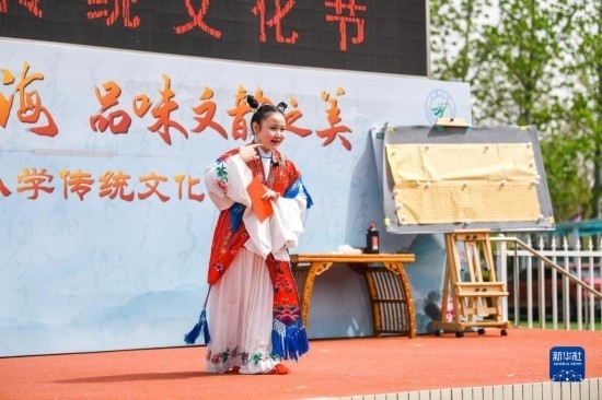 當(dāng)日,以“徜徉詩詞之海,品味文韻之美”為主題的傳統(tǒng)文化節(jié)在天津小學(xué)舉行。學(xué)生們在老師的指導(dǎo)下參與國學(xué)朗誦、京劇選段表演、書畫展示等活動(dòng),感受傳統(tǒng)文化的魅力。
