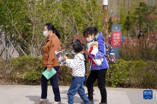 4月22日,市民在“換書(shū)大集”上挑選完圖書(shū)后準(zhǔn)備拿到圖書(shū)館閱讀。