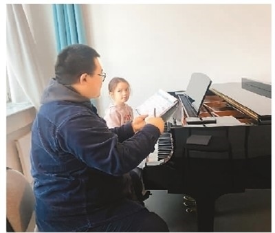 楊佳霖教中丹混血小朋友學(xué)鋼琴。 受訪者供圖