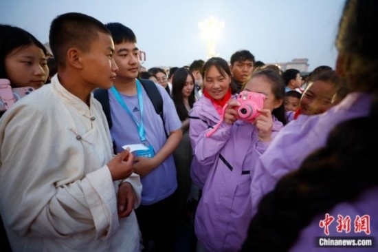 6月1日清晨的天安門廣場,一群來自青海玉樹、身著傳統(tǒng)藏族服飾的孩子組成了一道亮麗的風景線。