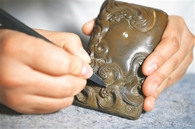 僅燒制出來就完美了嗎?還遠(yuǎn)遠(yuǎn)不夠。藺霄麟覺得,這些硯臺的造型上還缺點(diǎn)什么。待剩下的工序全部打磨完后,他把自己關(guān)進(jìn)了屋子,拿出一方得之不易的豆沙綠硯臺開始磨新造型?!罢f實(shí)話,每磨一次我的心都在顫抖,硯臺隨時都可能破裂?!?/P>