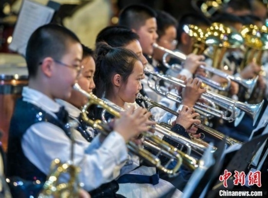 12月27日,新疆烏魯木齊市沙依巴克區(qū)教育系統(tǒng)“龍行龘龘 樂動童年”2024年交響管樂新年音樂會在該市青少年宮舉辦,來自烏魯木齊市第27小學的交響管樂團演奏了《紅旗頌》、《茉莉花》等經(jīng)典曲目,并與絲路名師合唱團合作演出《青春之舞》、《最炫民族風》等曲目。據(jù)介紹,該交響管樂團成立于2014年,規(guī)模從最初的40余人發(fā)展到現(xiàn)今近70人,團員平均年齡10歲。