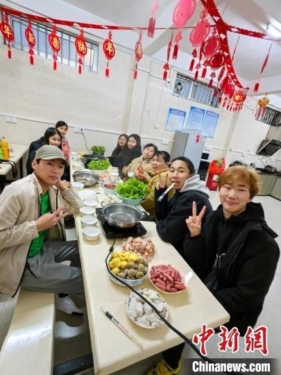 嶺南師范學(xué)院來華留學(xué)生在吃“年夜飯”。張一弛 攝