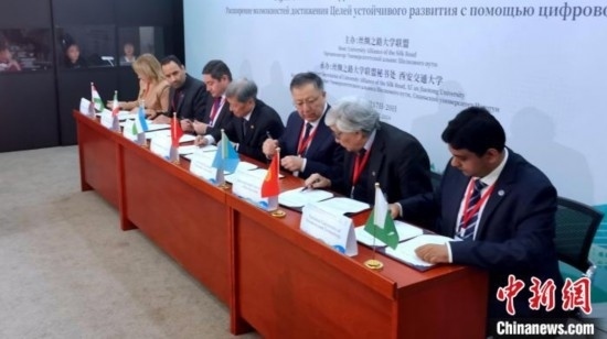 活動現(xiàn)場,西安交通大學、哈薩克斯坦國立大學、伊朗科技大學、塔什干信息技術(shù)大學、吉爾吉斯國際大學、巴基斯坦國立科技大學、塔吉克斯坦國立大學共同簽署“絲綢之路大學聯(lián)盟”內(nèi)上海合作組織成員國《高等教育合作協(xié)議》。在該合作協(xié)議框架下,各方達成首個學分互認項目的共識,即共同建設絲綢之路大學聯(lián)盟“可持續(xù)發(fā)展目標實現(xiàn)路徑在線課程”。
