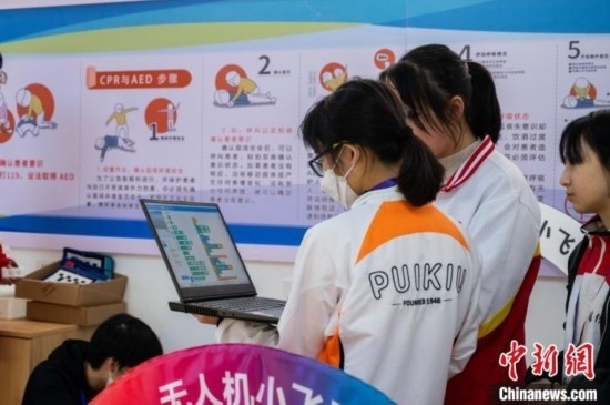 3月19日,兩地學(xué)生一起學(xué)習(xí)無(wú)人機(jī)巡線任務(wù)編程。唐哲 攝