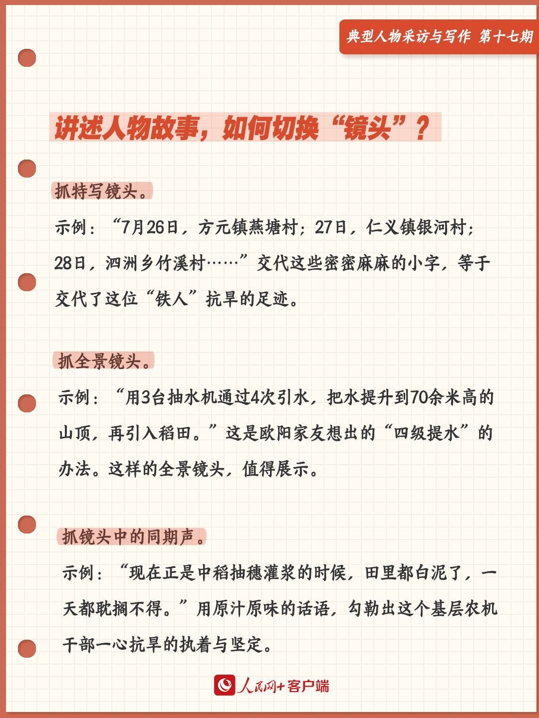 寫《“抗旱鐵人”歐陽家友》,在為如何用1500字以內的篇幅、寫一個事跡并非驚天動地的基層農機干部而感到困惑時,想到了“鏡頭”。于是,試著用幾個不同角度的“鏡頭”,串起歐陽家友的故事。