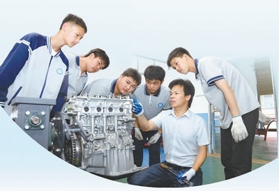 江西萍鄉(xiāng)市湘東中等專業(yè)學(xué)校,學(xué)生在學(xué)習(xí)發(fā)動機拆裝與檢測技能。任乾良攝(影像中國)