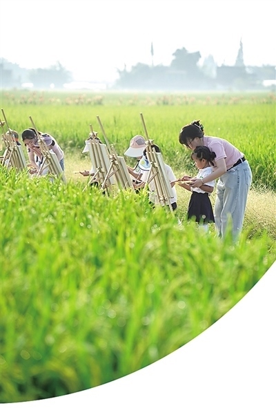 四川眉山市彭山區(qū)學(xué)院路幼兒園學(xué)生在田間寫生。翁光建攝(影像中國)