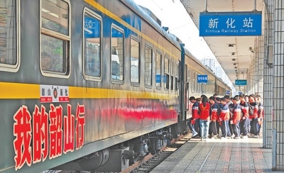 伴著汽笛長(zhǎng)鳴,一列紅色研學(xué)專列駛進(jìn)韶山站。這是中國(guó)鐵路廣州局集團(tuán)有限公司推出的“我的韶山行”紅色研學(xué)專列。車廂內(nèi),“乘風(fēng)破萬(wàn)卷,追風(fēng)正少年”標(biāo)語(yǔ)引人注目。打造“書(shū)香列車”主題車廂,在餐車設(shè)立“書(shū)香驛站”,將吧臺(tái)改造成“陽(yáng)光書(shū)社”,設(shè)計(jì)留言帖、主題打卡點(diǎn),發(fā)放文創(chuàng)紀(jì)念票卡……列車寓學(xué)于途,開(kāi)設(shè)韶山站現(xiàn)場(chǎng)教學(xué)點(diǎn),打造火車上的流動(dòng)課堂。