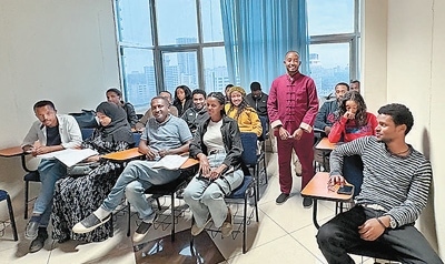 2021年,卡利布學(xué)成回到埃塞俄比亞,發(fā)現(xiàn)很多埃塞人有學(xué)習(xí)中文的需求,便開辦了“你好”中文學(xué)校。針對(duì)當(dāng)?shù)厝说陌l(fā)音和學(xué)習(xí)習(xí)慣,開發(fā)了阿姆哈拉語(yǔ)和中文雙語(yǔ)教材,在當(dāng)?shù)刂形慕逃I(lǐng)域獨(dú)樹一幟,吸引了上百名學(xué)員。這些學(xué)員不僅有即將赴中國(guó)留學(xué)的學(xué)生,還有與中國(guó)有生意往來(lái)的商人等。此外,卡利布教學(xué)內(nèi)容的一部分是教中國(guó)人學(xué)習(xí)阿姆哈拉語(yǔ),旨在幫助大家更好地融入當(dāng)?shù)厣睢?/p>