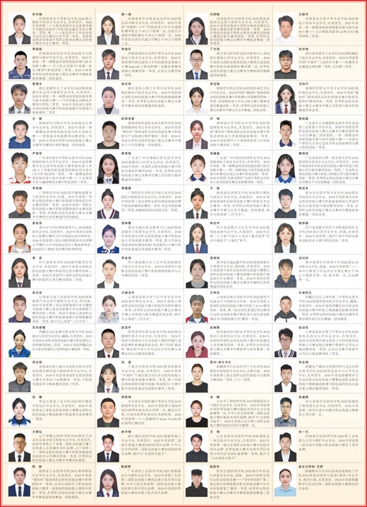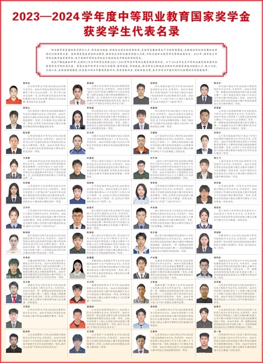 經(jīng)過嚴(yán)格選拔和評審,全國約2萬名中職學(xué)生榮獲2023—2024學(xué)年度中等職業(yè)教育國家獎(jiǎng)學(xué)金。以下100名學(xué)生是中等職業(yè)教育國家獎(jiǎng)學(xué)金獲獎(jiǎng)學(xué)生中的優(yōu)秀代表。希望全國中職學(xué)生以他們?yōu)榘駱?,愿學(xué)技能、學(xué)好技能,努力將自己鍛造成為新時(shí)代的高素質(zhì)技術(shù)技能人才、能工巧匠、大國工匠,在推進(jìn)強(qiáng)國建設(shè)、民族復(fù)興偉業(yè)中展現(xiàn)青春作為、彰顯青春風(fēng)采、貢獻(xiàn)青春力量,奮力書寫為中國式現(xiàn)代化挺膺擔(dān)當(dāng)?shù)那啻浩隆?/p>