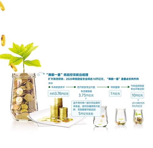 為重點(diǎn)支持既促消費(fèi)惠民生又調(diào)結(jié)構(gòu)增后勁的“兩新一重”建設(shè),根據(jù)《政府工作報(bào)告》,今年特別安排地方政府專項(xiàng)債券3.75萬(wàn)億元,比2019年有所增加;另有抗疫特別國(guó)債1萬(wàn)億元,資金用途共涉及6個(gè)領(lǐng)域,其中有部分也指向“兩新一重”建設(shè)領(lǐng)域。