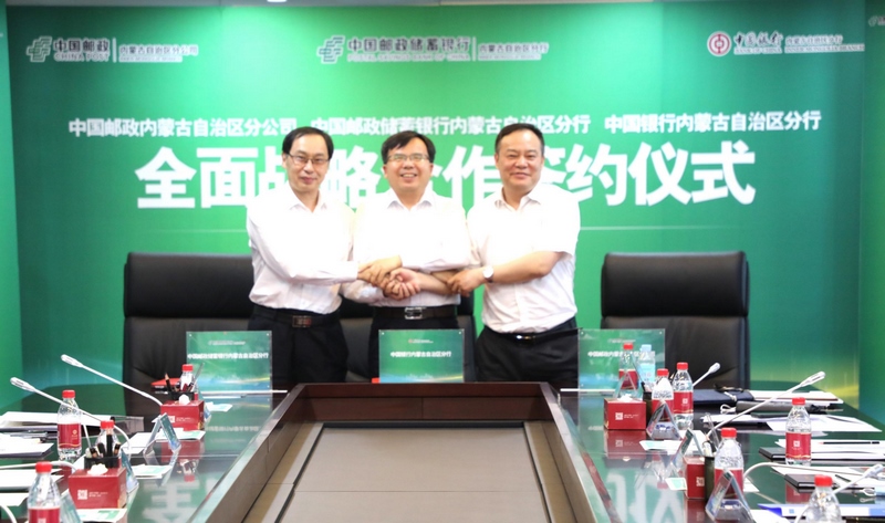 胡文勇行長表示,中國銀行內(nèi)蒙古分行植根草原沃土四十二載,始終把服務國家、自治區(qū)發(fā)展大局和賦能人民美好生活作為堅定使命,堅守金融本源,積極踐行國有大行責任擔當,以“八大金融”為著力點,為自治區(qū)經(jīng)濟社會高質(zhì)量發(fā)展提供了強有力的金融支持。中國郵政始終秉持“人民郵政為人民”的初心,以普遍服務為根基,在保證國家政令暢通、傳播黨的方針政策以及保障公民通信權(quán)、促進經(jīng)濟社會發(fā)展等方面發(fā)揮著重要作用。中國郵政儲蓄銀行承擔著“普之城鄉(xiāng),惠之于民”的社會責任,在提供普惠金融服務、發(fā)展綠色金融、助力鄉(xiāng)村振興等方面持續(xù)發(fā)力,已成為地方金融改革創(chuàng)新和服務實體經(jīng)濟發(fā)展的重要力量。希望未來三方持續(xù)拓展在金融領域和非金融領域的合作空間,共同為自治區(qū)廣大企事業(yè)單位和人民群眾提供更優(yōu)質(zhì)、更便捷、更全面的金融服務和郵政服務。