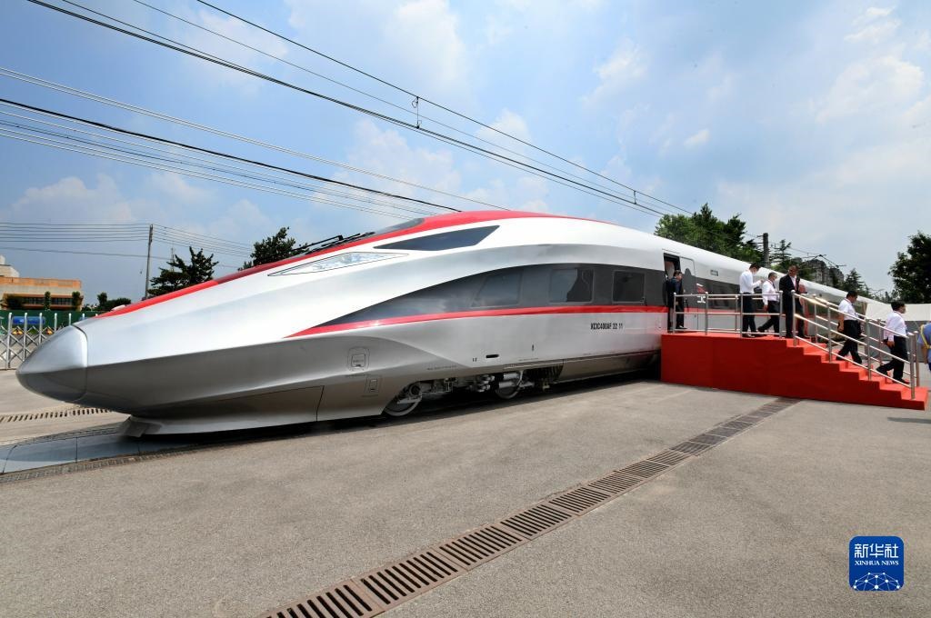 這是在位于山東省青島市的中車四方股份公司拍攝的雅萬高鐵高速動(dòng)車組(2022年8月5日攝)。新華社記者 李紫恒 攝
