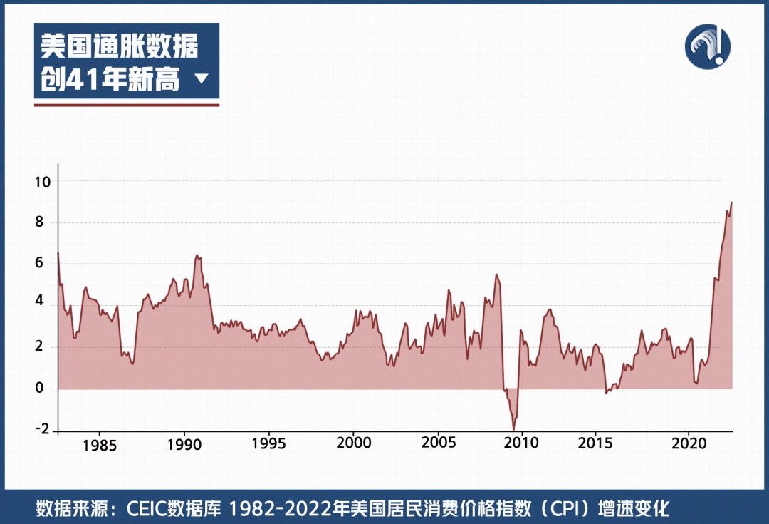 疫情期間,美國不僅以6.5%的經濟損失率(剔除宏觀經濟政策影響之后),位居調查中涉及的各國前列。更直接的表現(xiàn),就是美國通脹水平創(chuàng)41年新高。