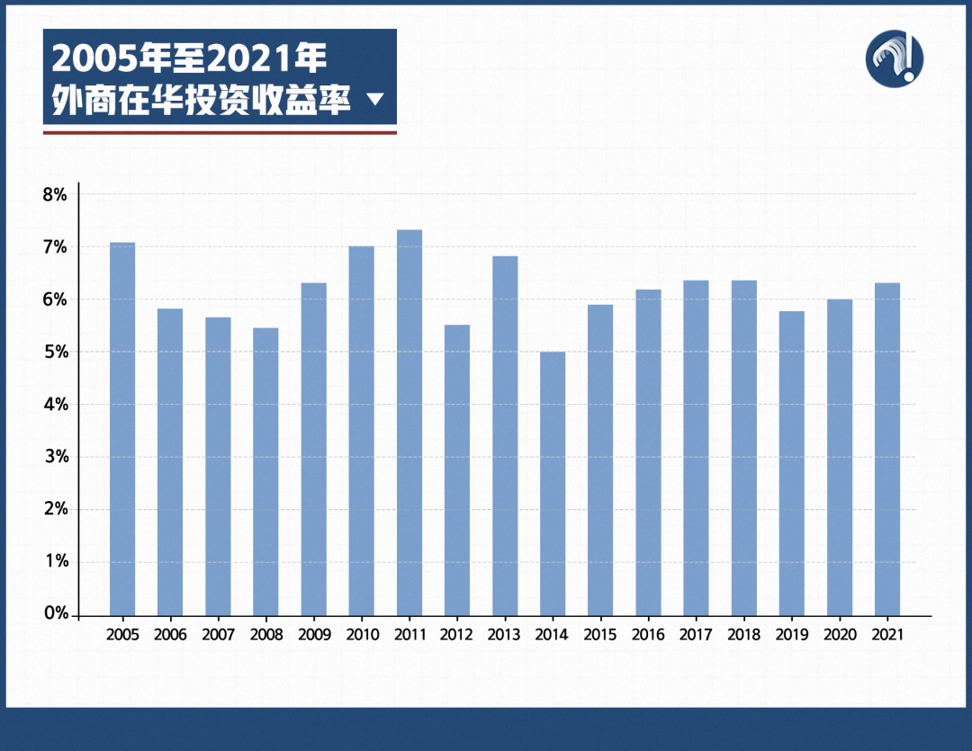從更長的時間維度上來看,2020年和2021年對華投資收益率較之前依然保持在穩(wěn)定的水平上。