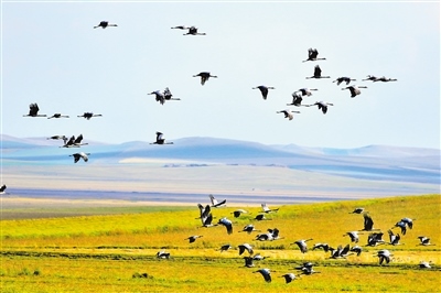 在這優(yōu)美畫卷中,蓑羽鶴就是額侖草原上的精靈,給草原平添了生命的活力。蓑羽鶴是鶴類中個(gè)體最小者,對(duì)生態(tài)環(huán)境質(zhì)量要求很高。從之前的形單影只,到現(xiàn)在的成群結(jié)隊(duì),蓑羽鶴對(duì)額侖草原的青睞,足以說明了額侖草原生態(tài)環(huán)境的保護(hù)成效。