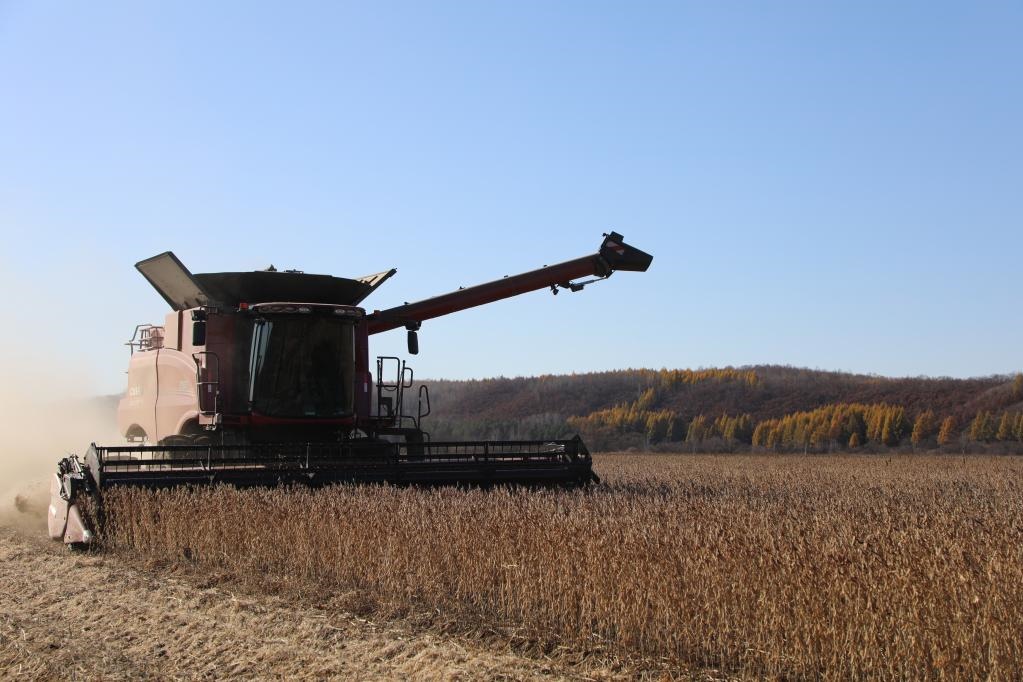 今年秋收,北大荒集團錦河農(nóng)場有限公司大豆收獲現(xiàn)場。新華社記者 黃騰 攝