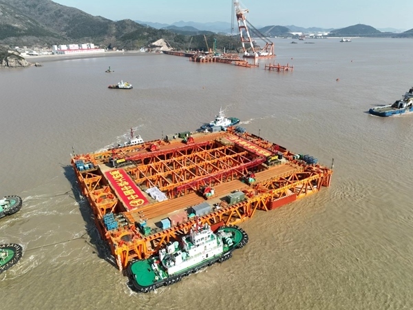 人民網(wǎng)北京2月17日電 (記者王連香)據(jù)中國鐵路上海局集團有限公司消息,2月16日13時30分,在寧波至舟山鐵路(以下簡稱甬舟鐵路)西堠門公鐵兩用大橋建設(shè)現(xiàn)場,5號墩自浮式鉆孔平臺,經(jīng)過8個小時的海上浮運,準(zhǔn)確到達(dá)5號主塔墩墩址處,標(biāo)志著世界最大跨度公鐵兩用大橋和世界最寬跨海大橋主塔墩基礎(chǔ)建設(shè)拉開序幕。