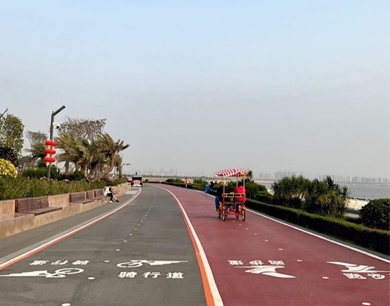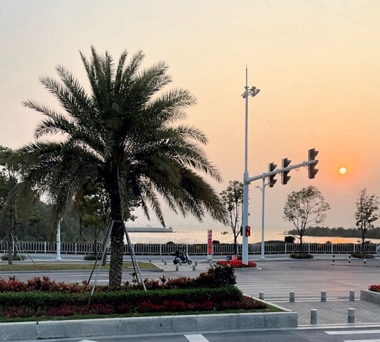 人民網(wǎng)東莞2月22日電 (記者趙雯 薛艷艷)濱海驛站坐落于廣東省東莞市濱海灣新區(qū),是東莞濱海長(zhǎng)廊首個(gè)建成的重要節(jié)點(diǎn),緊靠海岸線,南臨前海,隔海眺望南沙自貿(mào)區(qū)、中山翠亨新區(qū)。立于驛臺(tái)前,海風(fēng)習(xí)習(xí)拂來(lái),海天一線,日落降臨,浮光躍金。濱海驛站周邊建有廣場(chǎng)平臺(tái)、自行車(chē)道、沿海步道和園林綠化。濱海灣新區(qū)未來(lái)規(guī)劃建設(shè)一條長(zhǎng)約40余公里的濱海長(zhǎng)廊,以“運(yùn)動(dòng)廊+人文鏈+活力岸”為建設(shè)目標(biāo),打造生態(tài)海堤,不僅為游客提供親水體驗(yàn),同時(shí)也為鳥(niǎo)類(lèi)、兩棲類(lèi)動(dòng)物提供生境及遷徙通廊。