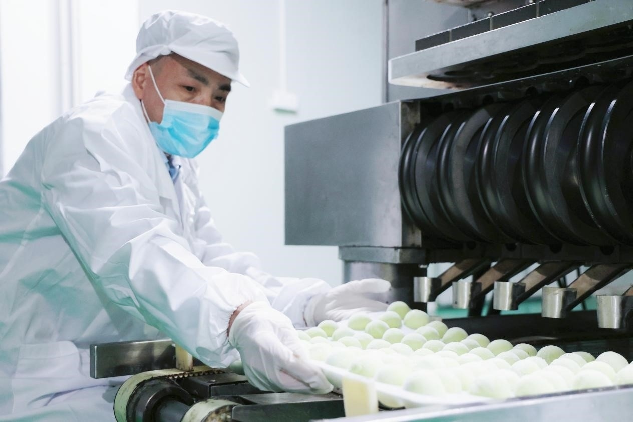 發(fā)展至今,孫府青團從幾分錢漲至3.5元/個,生產(chǎn)制造也從小作坊升級到了6000平方米的大車間。通過引入先進的生產(chǎn)設備,不斷調(diào)試機器,力求保證機械化生產(chǎn)的青團最大限度保留古法的原汁原味。