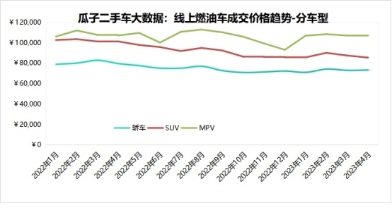 趨勢三:燃油SUV受降價(jià)潮影響最大,4月成交均價(jià)降近2000元,創(chuàng)15個(gè)月來新低