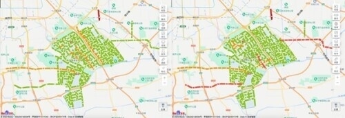 但在北京的亦莊AI信控區(qū)域內(nèi),假期的到來(lái)并未對(duì)亦莊市民的生活產(chǎn)生影響,4月28日晚高峰期間,亦莊區(qū)域受到北京交通壓力影響,300多個(gè)路口車(chē)流量雖有上漲,但在交通大模型的支持下,整片區(qū)域一路飄綠,擁堵指數(shù)控制在1.6以?xún)?nèi)。通過(guò)數(shù)據(jù)對(duì)比可以看出,百度AI信控及交通大模型技術(shù),有效緩解了重大突發(fā)交通壓力下的擁堵情況,能夠?yàn)槌鞘械慕煌ǔ鲂袔?lái)巨大的改變。